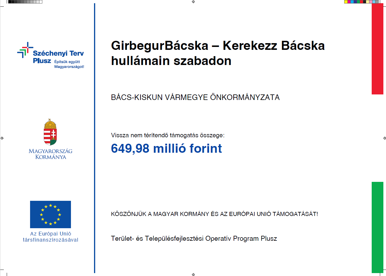 Projekt címe: GirbegurBácska – Kerekezz Bácska hullámain szabadon aktív turizmus fejlesztése az EuroVelo13 kerékpárút-nyomvonal mentén Bács-Kiskun vármegyében